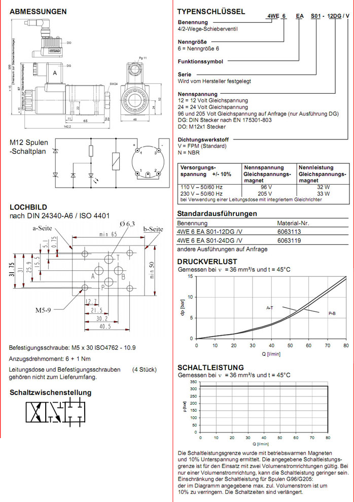 4WE6EAS01-12DG/V,4WE6EAS01-24DG/V